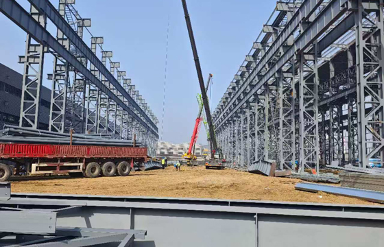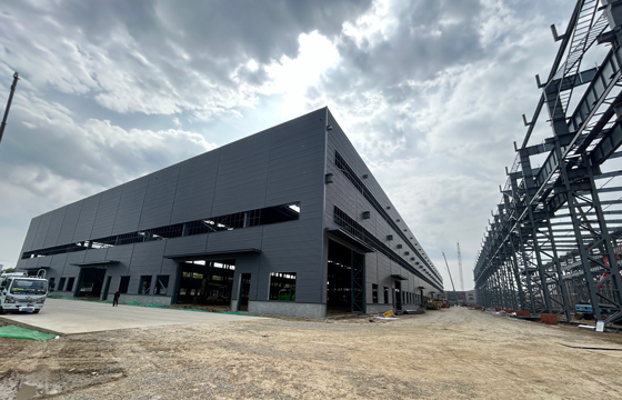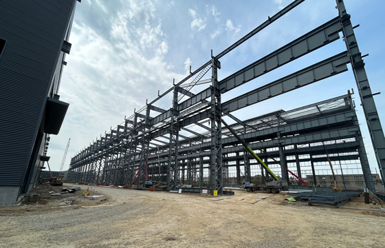 2025年10月年公司承建的江阴方圆科技有限公司大型风电精密部件项目-1#钢结构车间工程,面积24000平方米,目前已完成钢结构完成钢柱、钢梁的吊装,正在安装部分墙屋面板。